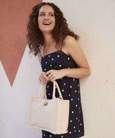 Cotton pocket natural starched jute midi tote