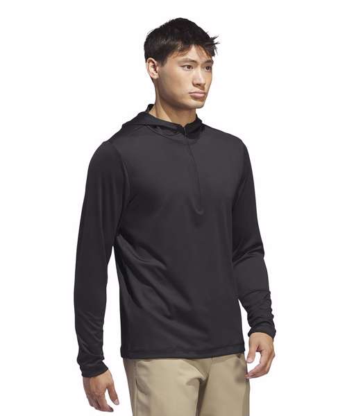Fend off the chill when golfing in lower temperatures in this lightweight half-zip hoodie. Made from soft, lightweight, interlock fabric that flexes for comfort and ease of movement. It’s the perfect piece to layer over a polo or t-shirt and is also easily worn under a jacket. Made with recycled materials.