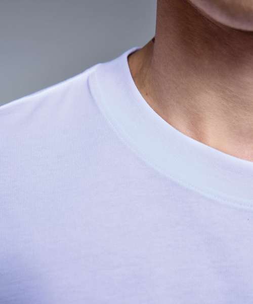 Relaxed fit. Certified organic. Soft hand feel. Ribbed crew neck. Twin-needle stitching details. Size label only.