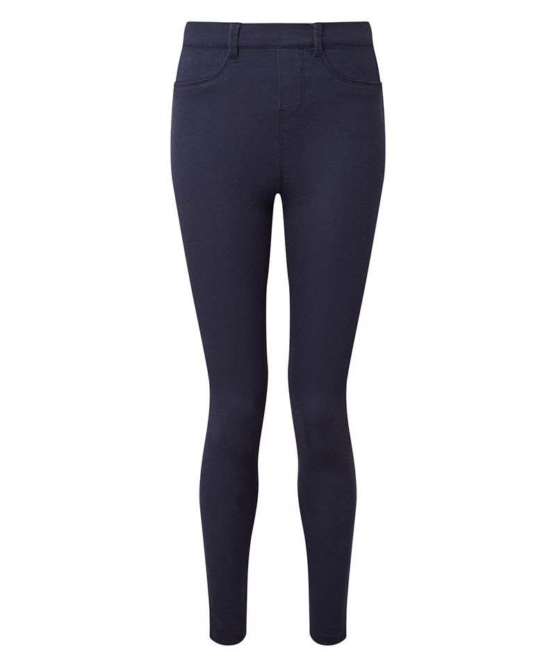 Women's classic fit jeggings. Faux fly zip fastening at waist. Belt loops. Two faux pockets to the side and two functional back pockets. Product contains no branded neck label. Removable Kimble or looped garment tags. Inner seam label holds important product information on one label with a second label containing brand information which can be cut-away. Please note old stock may contain a fixed branded label.