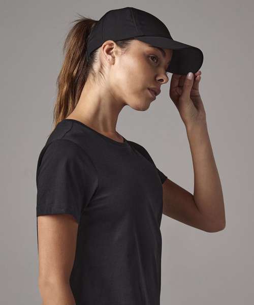 100% Recyled Polyester Coolmax® fabric sweatband. Contains 100% certified recycled polyester. Lightweight, breathable fabric. Pre-curved peak. Slide adjuster and elasticated band fastening. Tri-glide adjuster. TearAway label for ease of rebranding.