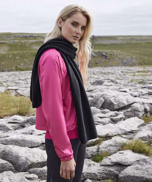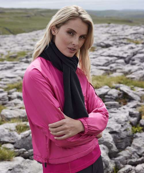 This short pile, lightweight fleece scarf is made from 100% certified recycled polyester. The fabric is soft against the skin and benefits from anti-pilling properties to maintain the brushed finish on both sides. Available in a choice of core colours, each finished with overlocked edges.
