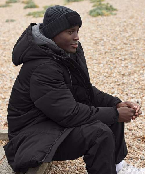 The zipped front patch pocket on this heavyweight beanie creates a unique utility aesthetic, whilst embodying a technical outlook. The engineered crown offers superior comfort and creates a silhouette with structure for functional street and sport styling. A chunky double-layer knit and thick turn-up cuff provide optimum warmth. Contains certified recycled polyester.