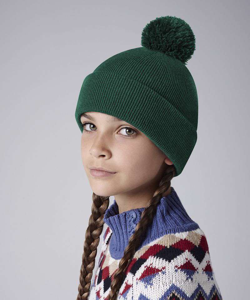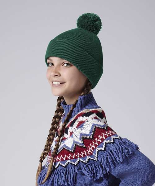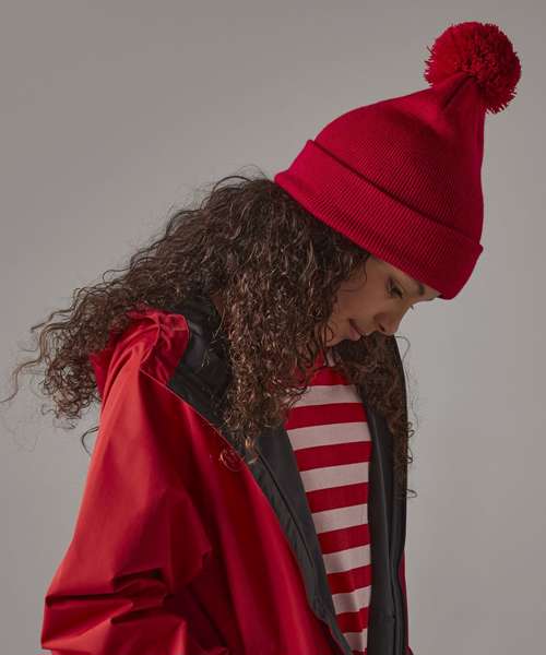 This classic pom pom bobble hat has the same style and construction as the popular B426B, but sized with children in mind. Soft-touch acrylic is gentle on the skin, while the double-layer knit maintains warmth. The colour palette is fun and versatile, including best-selling colourways, cool and contemporary tones, plus plenty of colours designed to complement school uniforms.