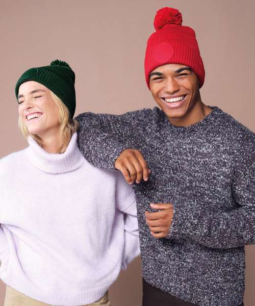 Contains 100% certified recycled polyester. Basket weave knit. Double-layer knit. Self-coloured pom pom. Microfleece lining for comfort and warmth. Cuffed design for optimal decoration. TearAway label for easy rebranding.