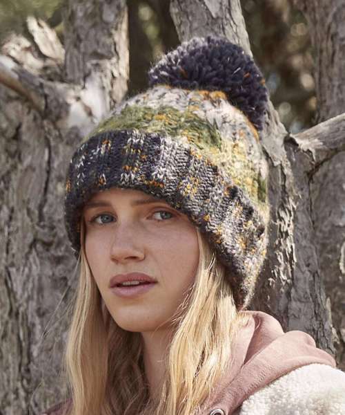 BC486: Corkscrew pom pom beanie