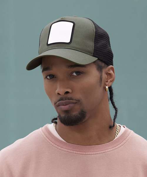 The Appliqué patch 5-panel trucker effortlessly combines classic details with a modern edge. Featuring a 100% cotton front panel and peak, along with recycled polyester mesh rear panels, this cap offers breathability and sustainability. The curved peak and contrast colour styling add a fresh, sporty look, while an appliqué cotton twill patch offers the perfect opportunity to decorate. A timeless 5-panel design with a stylish twist – perfect for everyday wear.