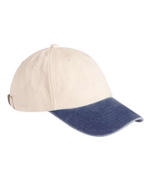 The Contrast peak low-profile vintage cap is made from 100% soft-washed cotton for a clean, lived-in look. It features a soft, unstructured crown and pre-curved peak, delivering relaxed shaping with universal appeal. Finished with stitched ventilation eyelets, it has a self-fabric strap with brass-effect buckle for a secure, adjustable fit. Designed for easy rebranding, this versatile, 6-panel cotton cap is ideal for lifestyle collections and casualwear ranges.