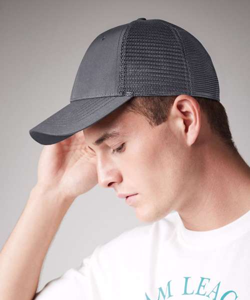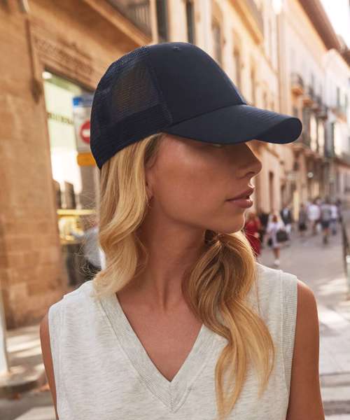 Made with 100% certified recycled polyester, the BC75R is a stylish and sustainable addition to any collection. Its sustainable credentials include its breathable, recycled polyester mesh rear panels. The 6 Panel design features a pre-curved peak and structured front panels, as well as a snapback size adjuster for maximum comfort.