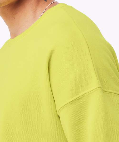 Side-seamed. Retail fit. Unisex sizing. Tear-away label. 1x1 ribbed cuffs and waistband. Drop shoulder.