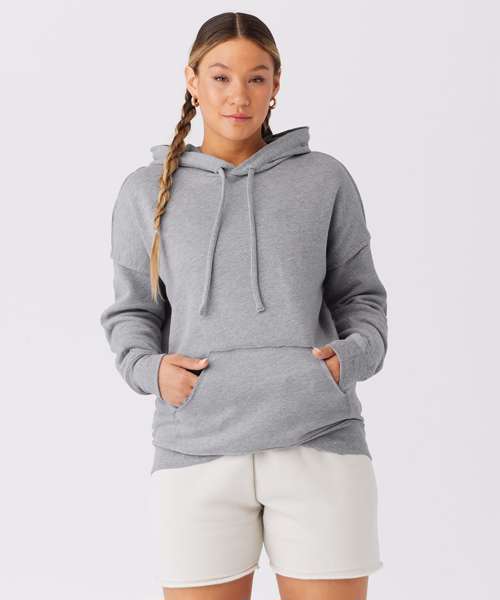 Oversized fit. Raw seams at shoulders and pocket. Oversized kangaroo pocket. Side-seamed. Raw seam finish. Tear-away label. Retail fit.