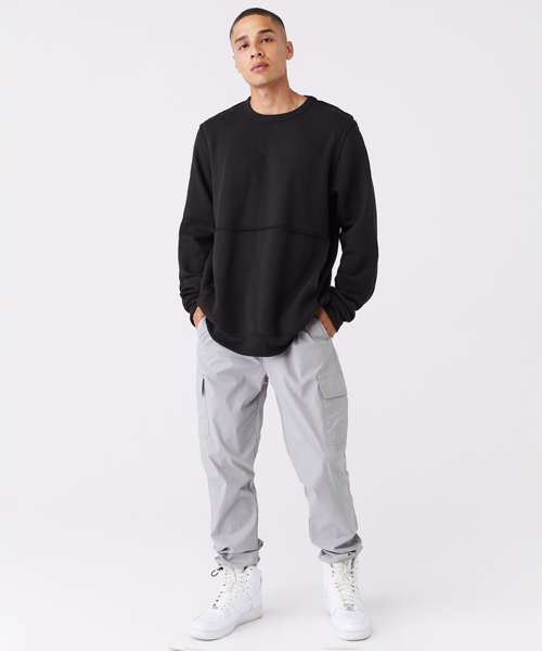 This raw-seam crew pullover is a year-round essential, in super-soft sponge fleece designed for warmth and breathability. With an oversized kangaroo pocket and on-trend raw-seam finish, this pullover completes any laid-back, layered look. Thoughtful details include side seams and set-in sleeves.