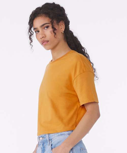 This Jersey crop tee slides right into on-trend streetwear style for summer. With oversized sleeves and a relaxed body,it drops a little lower in the back for an effortlessly cool feel. Fabricated from ultra-soft, lightweight Airlume cotton to flatter, this looser crop features a finished hem and neck binding.