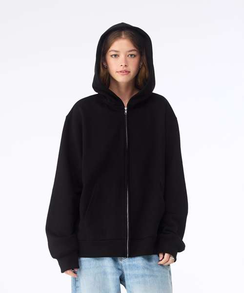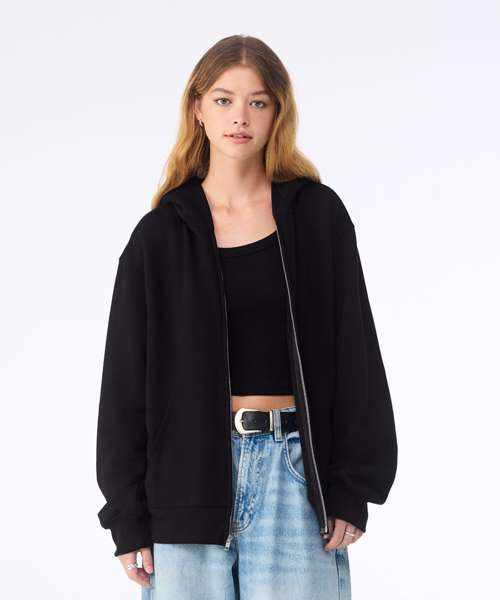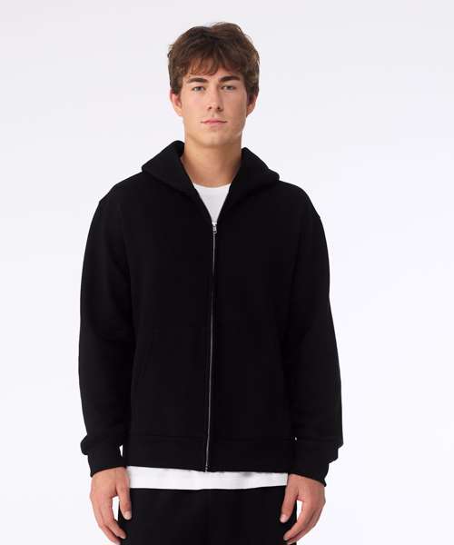 The Unisex heavy full-zip hoodie reimagines a wardrobe staple with heavyweight fleece and refined construction. Designed with a silver zip and no drawcords, for a streamlined finish, this hoodie is a modern nod to a Y2K favourite.