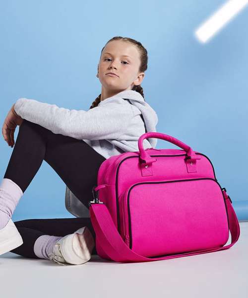 Retro styling. Detachable adjustable shoulder strap. Zippered main compartment. Zippered front pocket. Internal mesh pocket. Internal baseboard. Self-fabric carry handles.