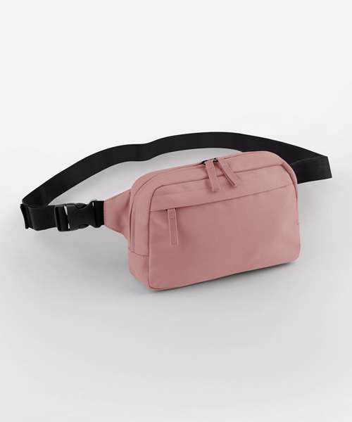 Fully lined with 100% recycled 210D polyester. Contains 100% certified recycled polyester free. Two-way zipped opening for easy access. Zipped front pocket. Fully adjustable waist strap. TearAway label for ease of rebranding.
