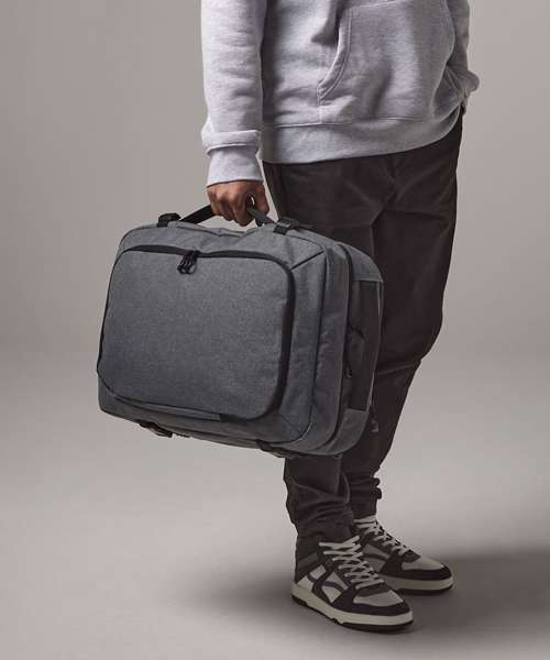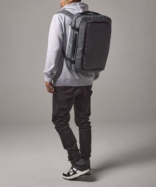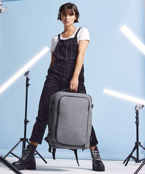 TearAway label for ease of rebranding. Convenient dual compartment design for easy packing. Padded laptop sleeve compatible up to 15.6". Lockable main compartment zip. Quick access zippered top pocket. Large zippered front compartment with internal mesh divider. Zippered internal pocket. Dual compression straps. Padded top and side handles. Foldaway backpack shoulder straps aircraft cabin compatible - suitable for most airlines. Can be further customised with BG485 Escape handle wrap.