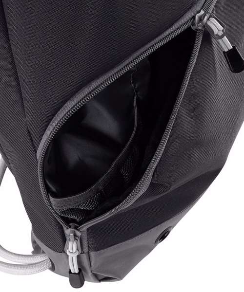 - Water-resistant fabricShoe tunnel/wet pocketWater bottle holder
