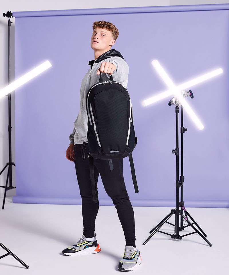 TearAway label for ease of rebranding. Zippered internal pocket. Internal slip pocket. Elasticated mesh side pockets. Webbing attachment loops. Reflective accents. Padded back panel. Reach certified.