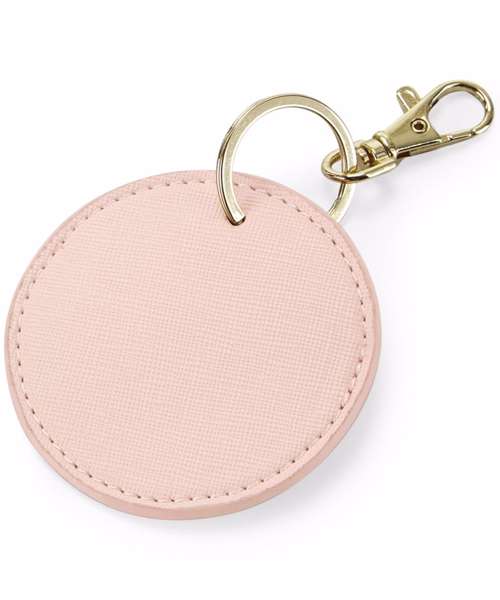 Personalise your Boutique collection with these interchangeable and customisable key clips. Designed for ease of decoration, this 100% leather-look design can be used as a keyring or bag charm. Fine grain Saffiano fabric gives a luxurious finish, while a high-shine, gold metal key clip adds to the premium quality. Also available in rectangular (BG744) and heart-shaped (BG746) styles.