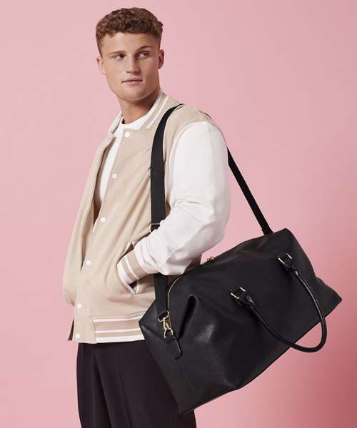 Saffiano fine grain. Extra-long main compartment zip for easy access. Zipped internal valuables pocket. Soft-touch lining. Internal baseboard. Protective base feet. High-shine gold metal zip. Self-fabric carry handles. Can be carried by hand or over the shoulder. Compatible with BG765 Boutique adjustable bag strap, Detachable, adjustable high-density webbing shoulder strap. TearAway label for ease of rebranding.