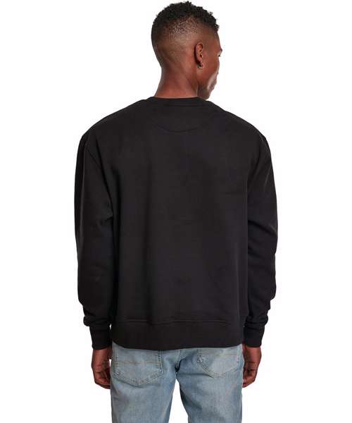 The oversize cut crew neck sweatshirt convinces with its high cotton content. Wide ribbed cuffs at the hem and sleeves round off the look. The crew is made for finishing by screen printing and flex printing. This item is manufactured in a FAMA Certified factory. FAMA stands for Facility and Merchandise Authorisation and is a high standard production certificate.