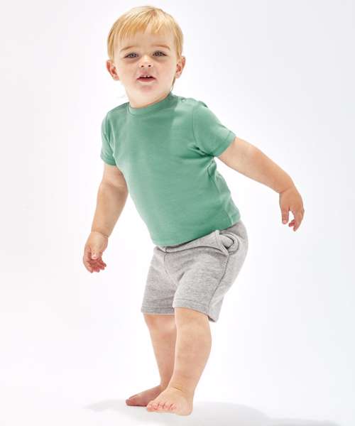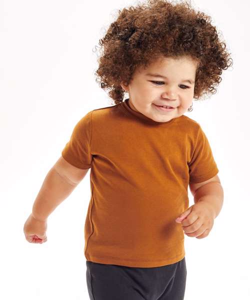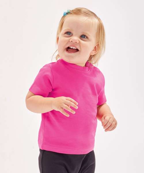 Baby pure cotton crew neck T in soft, comfortable stretchy fabric with poppers at shoulder. Oeko-Tex certified. Organic 100 Content Standard certified.