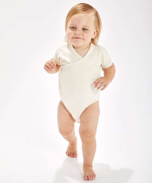 Stylish wrap front bodysuit. Soft and stretchy fabric. Self-coloured poppers at front and at crotch. Raglan sleeves. Oeko-Tex certified. Organic 100 Content Standard certified.