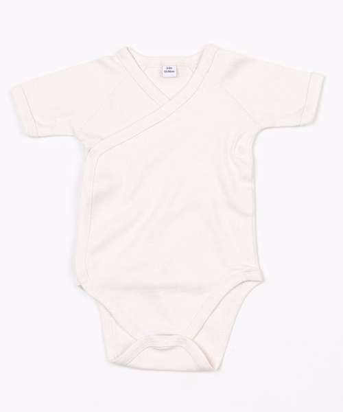 Made from 100% organic cotton, this mock-wrap front opens out flat for easy dressing and decorating. Flat seams at armholes and soft binding at edges ensure comfort and longevity in wear.