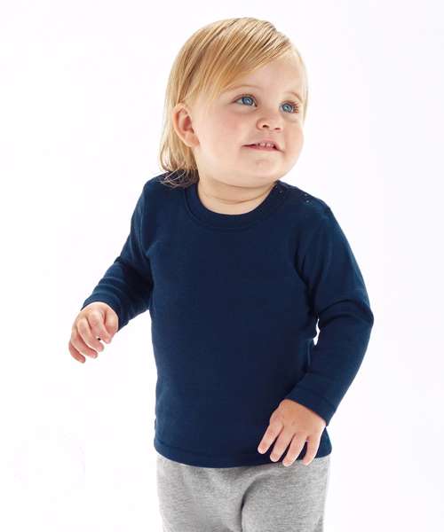 Super soft baby long sleeve T with poppers at side of neck for ease of dressing.