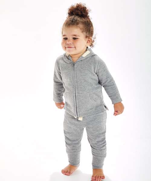 Soft and cosy baby zip through hoodie with straight hem and kangaroo pocket at front. 3-piece hood for better fit, with stylish and natural coloured mock-drawcord detail.