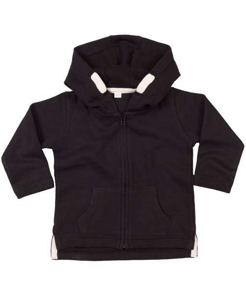 Soft, zip-through baby hoodie with brushed inner; 3-piece hood; kangaroo pockets and mock drawcord effect. Oeko-Tex certified.