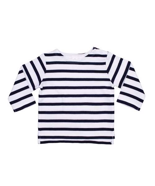 Classic, nautical style Breton top in soft, yarn-dyed striped fabric with long sleeves, side vents and slight drop tail. Features Tear-out label. Organic cotton and OEKO-TEX® certified for skin-friendly confidence.