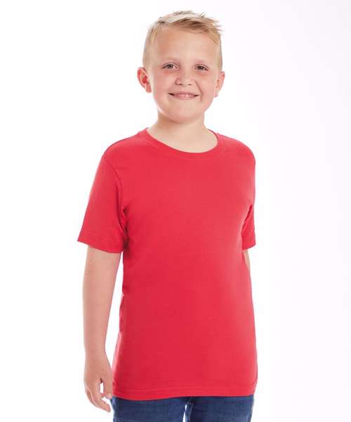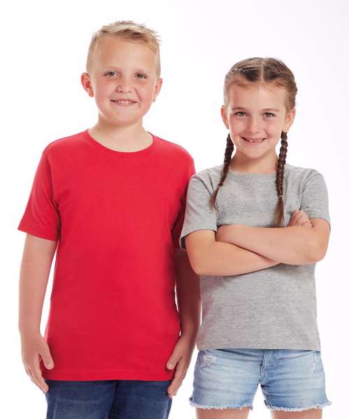 Fine narrow neck rib. Contrast colour back neck tape. Unisex fit. Neutral size neck label for easy relabelling. Red & White: 100% organic cotton certified to the OCS. GOTS certified. Oeko-Tex certified. Vegan certified.