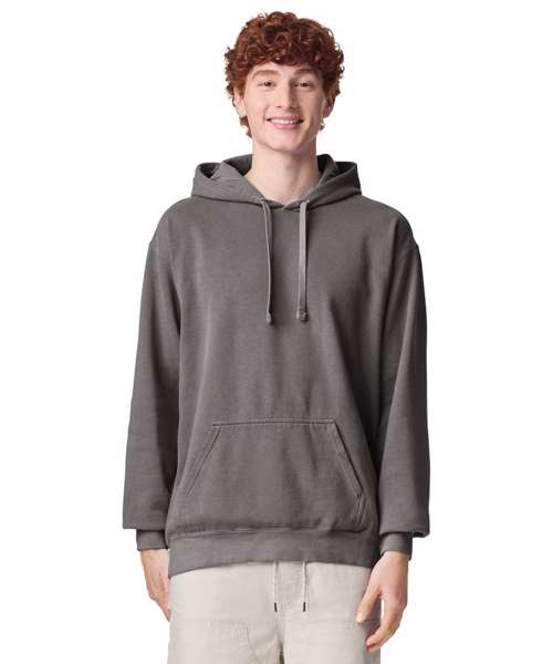 Made with 100% soft ringspun US cotton face for enhanced printing. Jersey-lined hood with colour-matched flat cord. Back neck patch for easy customisation. Rolled-forward shoulder. Pouch pocket. Relaxed fit, side-seamed body. 1x1 rib cuffs and waistband with spandex for enhanced stretch and recovery. Signature twill label and back neck twill tape. Made with OEKO-TEX Standard 100 certified low-impact dyes. Clean pigment dye colours are salt-free.
