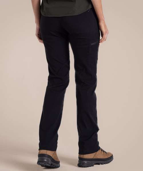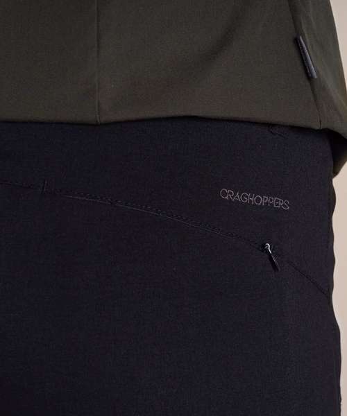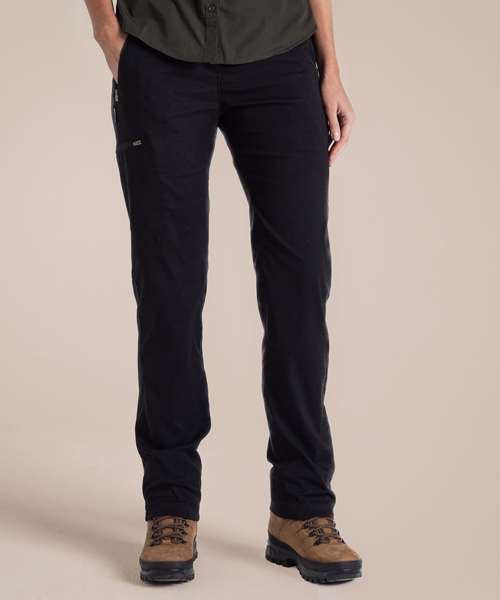 Stretch trousers with water-resistant finish, featuring 4 pockets. Stretch recycled polyamide elastane with EcoShield DWR finish. 100% recycled zip tapes. UPF 40+ sun protection and SolarShield technology. EN1378-2.