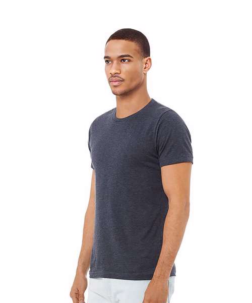 Heather colours: 52% Airlume combed and ringspun cotton, 48% Polyester. Black Heather and Athletic Heather : 90% Airlume combed and ringspun cotton, 10% Polyester. Prism colours: 99% Airlume combed and ringspun cotton, 1% Polyester.