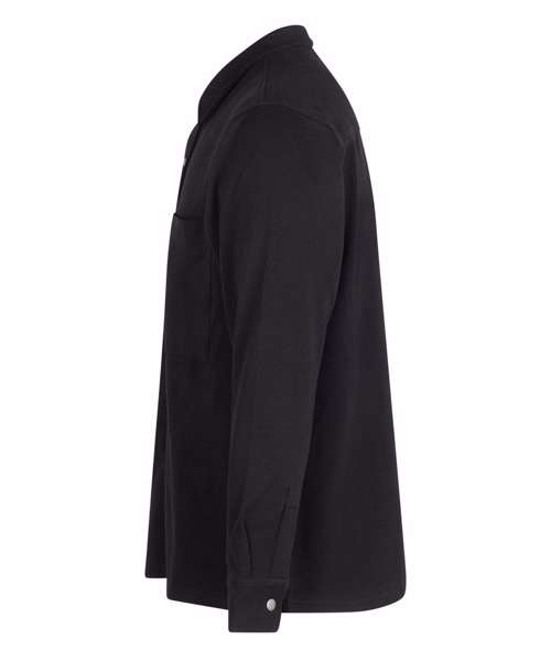 Piqué overshirt-style outer fabric. Brushed back fleece on the inner. Contemporary styling. Two front chest patch pockets. Metal stud fastening at centre front and cuffs. Back yoke. Regular fit. Tag-free for easy rebranding.