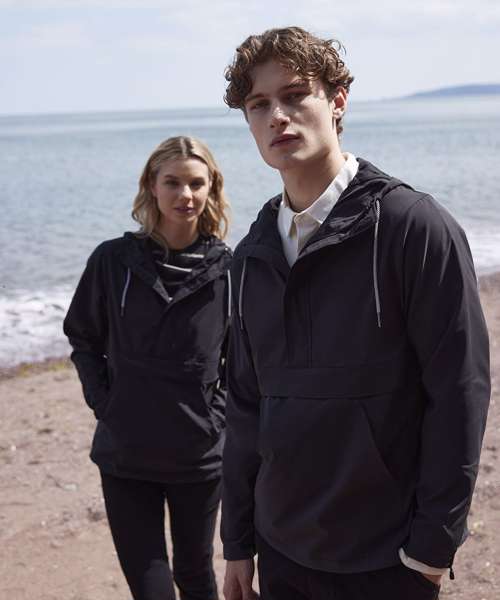 For the carefree. For those with a youthful spirit. For those who work hard and play harder. This on-trend hooded pullover jacket with showerproof fabric and mesh lining features a pouch pocket, side seam opening with drawcord hem, embroidery access and contrast drawcords. Great looking leisurewear. Thoughtfully created.