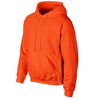 Air jet yarn; softer feel and no pilling. DryBlend® wicking performance. Double lined hood with matching drawstring. Tearaway label. Twin needle stitching. Pouch pocket. Twin needle cuffs. 1x1 rib with elastane. Quarter turned to eleminate centre crease. Please note safety colours are for leisure purposes only.