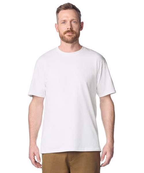 100% ringspun cotton. 185 gsm (white 180gsm). 24/1 yarn count. Modern classic fit. Side-seamed. Small-sized label on the back neck. Taped neck and shoulders. Joker label in the side seam.