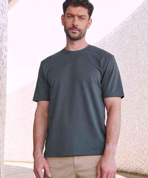 Unisex t-shirt made with best-selling 100% Coolplus® permanent wicking fabric. Easycare properties. Regular fit. Ribbed collar. Twin-needle-stitched cuffs and hem. Side vents. Henbury cut-out label. Part of the Coolplus® collection.