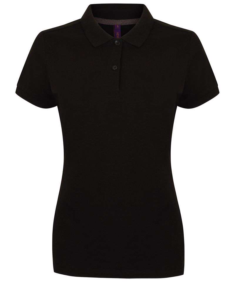 Modern Ladies fit with shaped side seams. Lightweight micro-fine piqué with a short point collar, fitted sleeve and cuffs. Micro-fine piqué is ideal for printing. 2 Button placket, DTM buttons. Contrast herringbone tape in back neck. Henbury Cut-out back neck brand label.