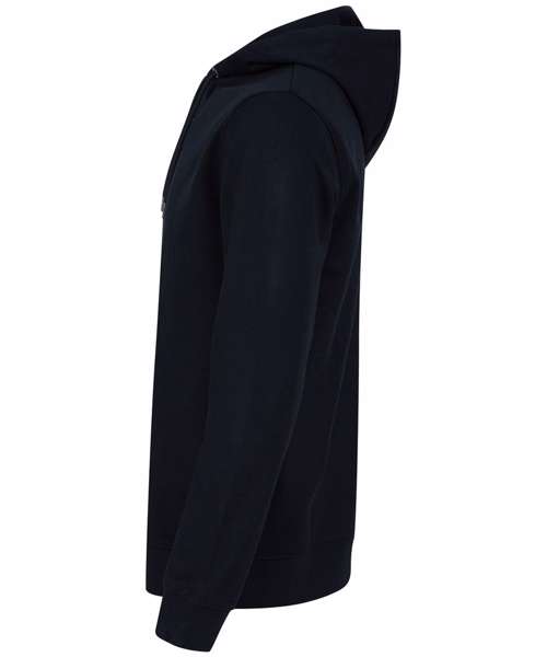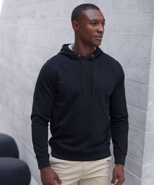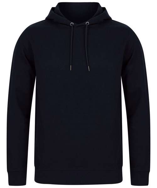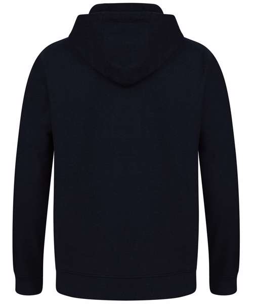 Fabric using recycled materials. Regenerated cotton mixed with recycled polyester. Brush back fleece. Set-in sleeves. 3-piece hood with drawcord and metal ends. Ribbed cuff and hemline. V insert at neckline. Regular fit. Henbury cut-out label for easy rebranding.