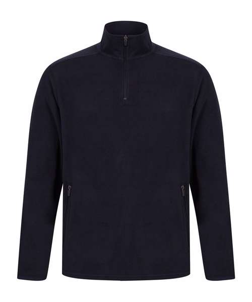 Anti-pill microfleece fabric ideal for decoration. ΒΌ exposed zipper at neck. Soft stand collar. 2 exposed zipper side pockets. Shoulder panel. Self-coloured binding at cuff. Twin-needle hem. Henbury cut out label.