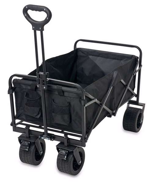 This foldable cart offers so much versatility! A convenient cart for festivals, holidays, day trips, business, and much more! Seamlessly folds and packs away, making it easy to store and great for travelling when you have limited space. A durable build with 8" wide wheels means you can tackle festival fields and day trips out with confidence.