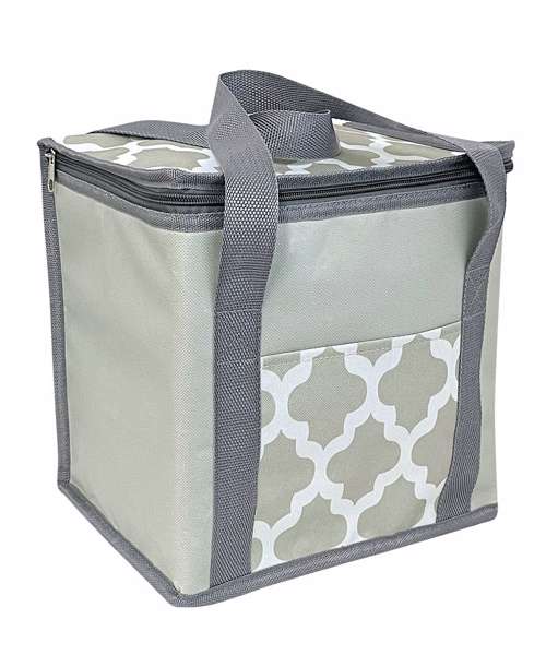 Moroccan-design cool bag with 12-litre capacity. Insulated foil inner. Tough exterior fabric. Fabric carrying straps with zip fastening.