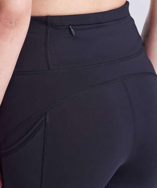 Four-way stretch for maximum movement. Side phone pockets. Adjustable waist cord. Back zip pocket. Ergonomic fit avoiding high-abrasion areas for maximum comfort. Made with recycled polyester.