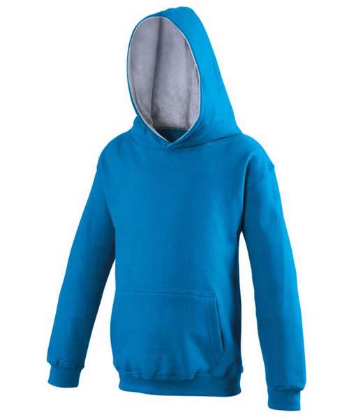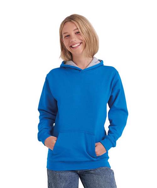 Twin needle stitching detail, double contrast hood with contrast inner. Kangaroo pouch pocket. Ribbed cuff and hem. Soft cotton faced fabric creates ideal printing surface. Brushed inner fleece.
