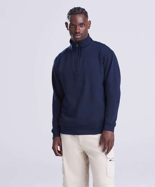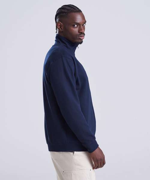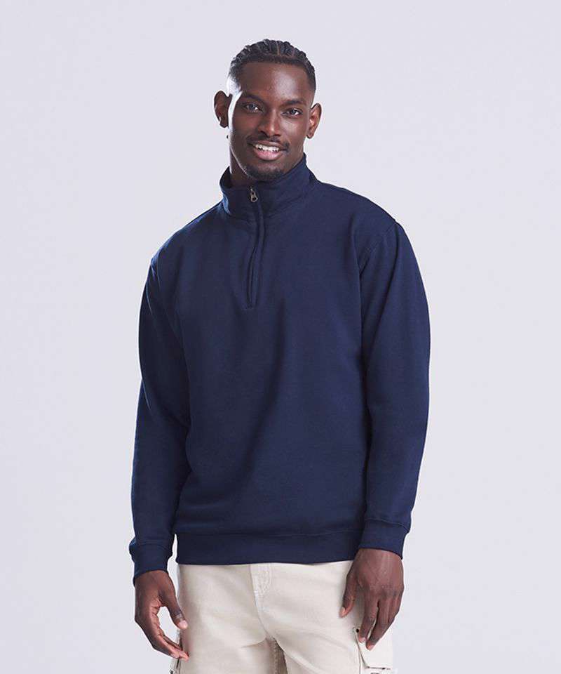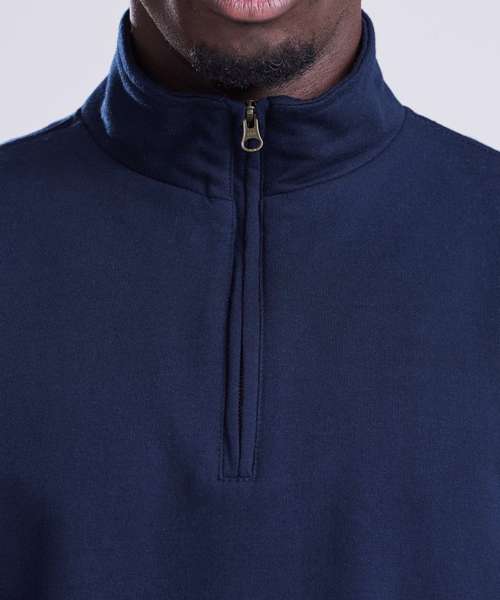 ¼ zip neck. Metal YKK zipper and puller. Ribbed cuffs and hem. Soft cotton faced fabric creates ideal printing surface. Simple tear out label makes it perferct for rebranding. Brushed inner fleece.